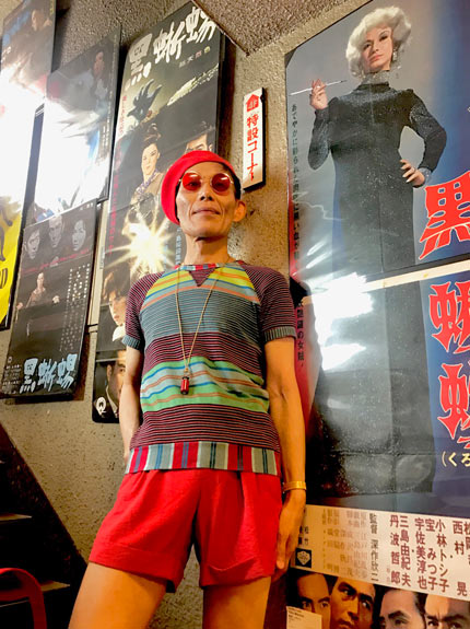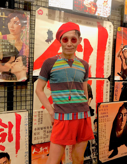 三島由紀夫さん関連の映画ポスターの前で。