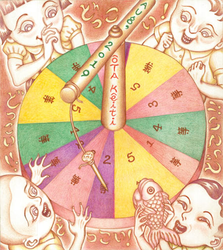 まあ 兎角こういうのは 下に磁石が仕込んであったりで 一等が出ないようになってて 金華糖の鯛もいつの物だか。コケラなんか擦れちゃって もう鯛だか魚雷だかわかんなくなってそうな、、なんてぇ事は無いはづ。