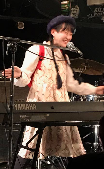 強力な打楽器、変拍子、不協和音、即興、それに カニが何たらとか チョコが逃げたとか バクがどうしたとかそんな お子さんぽい歌声がからんでく。あら〜そうなのね〜って感じ。レザニモヲの巧妙なお遊戯みたいなサウンドをうまく言葉に置き換えられませんが他のどこにも無いタイプ。ロック的余計な臭み まるで無いです。朗らか且つスリリングなこども動物園です! この日も多くの人達から沢山のおほめをいただいていて そんな有り様を見ていると嬉しくなりますね。