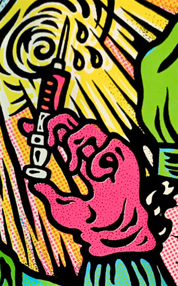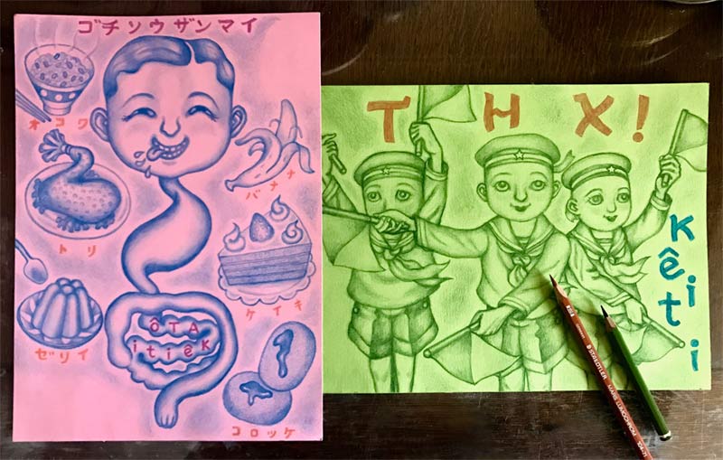 80年代の初め頃から私の作品は フランスでも いつの間にか紹介され、一部のヒネたラフィネ達の間で 少しは 話題になっていましたが ちゃあんとオファーを受けて描いたのは 1988年頃のこの絵が 第1作です! テーマは「マッド サイエンチスト」という事でこんな絵にしたのでした。