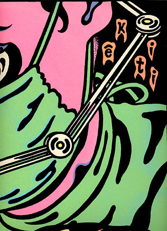 マルセイユのパキートから新しいポスターが届いて わくわくと出してみると意外なカラフル色! いつもは彼の無邪気過ぎるカラーリングが意外性ある効果を発揮してとてもスリリングでおもしろいんで彼の感性にまかせちゃうんだが今回はちょっと絵の内容とややチグハグかなー。『ひなあられ』かと思った! 子供達出演のヘンテコな内容の絵だとマッドに色展開してゆくのがよいのでカラフルでOKなのだが今回は大人の女性のキリキリした内容。女性は僕にとってこの世で最高の神秘の存在なの。できれば神秘カラーが良かった。神秘カラーとはセクシュアルな色相いをロマンチック・ハーモニーさせてゆく感じ。色は色でも「色っぽい」の色なのだ。そおいう色に包まれていたいんだけどなあ。パキートったら若い恋人とデきちゃってるもんでついポヤポヤの色になっちゃうんじゃないのやら。うー うらやましいっ! そこだけマネしたい! フランス男の恋のメソッド、ぜひ御伝授願いたいもの。ま、今後は少しはツベコベ言う事にして今回はこれでよろこんでもらおうじゃないの!