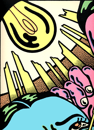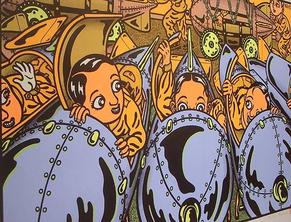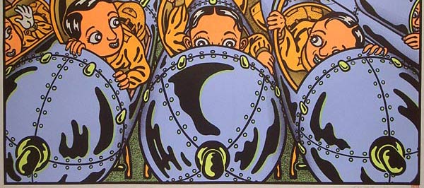 この絵は母親の養育が空虚で中身のない子供達を増やしているというテーマで以前"AERA"誌に描いたポンチ絵で (Le Dernier Cri では ) "DOLL"となっているが人形ではなくあくまでも"風船児童"なのだ。まぁカラッポな人は今も昔も大昔もこれからもいっぱい居て風の吹くままにころがっていくのだね。