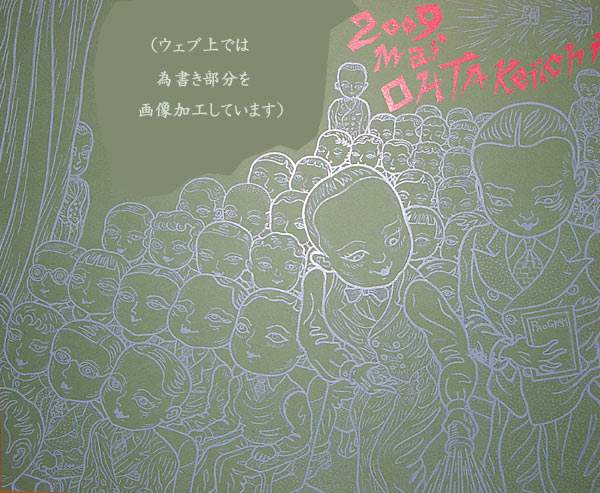 箱書きはニューウェイヴな文字をレタリングして、よーやく30年の月日を費やして完全な出来上がりとなり精一杯のきれいなおべべでもうじき異人さんの許へ行ってしまいますねえ。いつまでも可愛がってもらえますようにと私は願うのです。いつも作品を売却するときはなんともいえずさみしい気持ちになるけれど自分の所でわだかまっているよりは素敵に飾ってくれるおうちに行った方が彼らは、しあわせだし、そーでなければ絵が生きて活躍しているとはいえないわけです。作品を物品的に集めたり売り買いするアート・コレクターやギャラリーに売却するのは奴隷に売るよーなもの。養子として絵を購入して大切に飾って日々の暮らしの中に生かしてくれる所にこそ彼らは行くべきなのです。