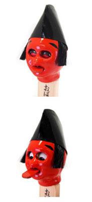 「おばけの金太」なる伝統的郷土玩具が熊本にあります。真っ赤なお顔に とんがり烏帽子。紐を引くと舌をベロりと出し 目玉を裏返す、という全国の郷土玩具の中でもかなり強印象な代物。しみじみ感無し!