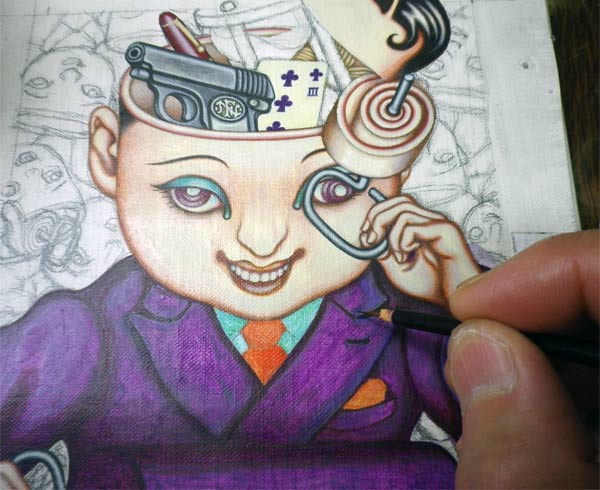 ヘリンボーンの織り目を描き込む。見せ場! 絵は見世物なのだ。